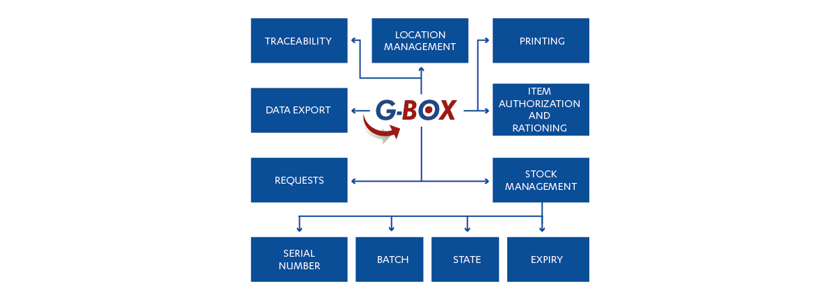 G-BOX is the software solution for managing all your references which require controlled distribution (PPE), increased supervision (high added value devices), infallible tracking (serial/batch number, use-by date), reliable stock management to prevent production standstills (cutting tools). Your easy-to-install G-BOX software will make your life easier whilst making your stock more reliable and cutting your costs.